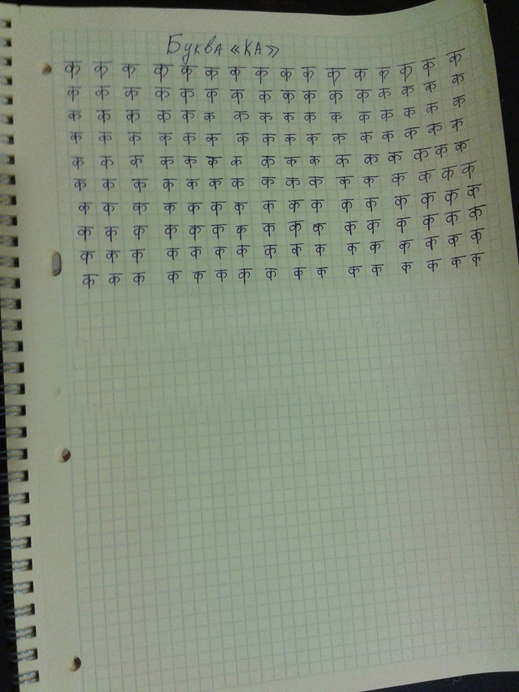Если вы поставили раскладку клавиатуры для языка Санскрит, то нажав клавишу с английской буквой «K», вы введёте описываемый символ «КА».