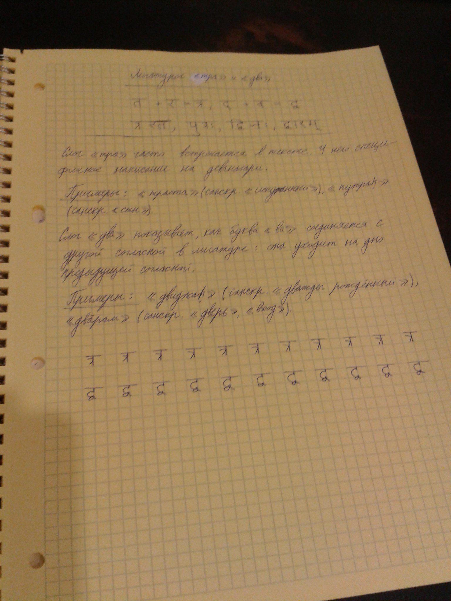 Слог «тра» часто встречается в тексте. У него специфичное написание в Деванагари.